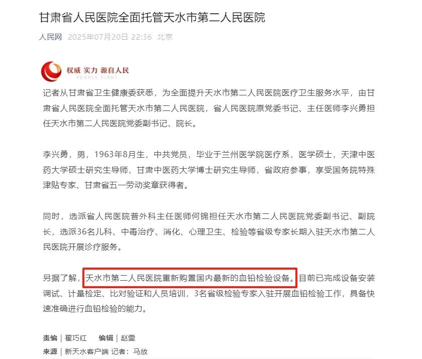 根據官方報道,昨日天水市第二人民醫院在省委省政府主導下完成實驗室體系全面整改,正式引進博暉創新最新一代血鉛檢測設備
