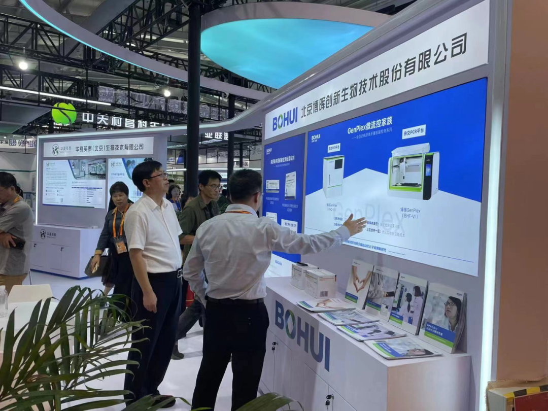 北京市昌平區委副書記、區長支現偉攜各部門領導一行蒞臨博暉創新展位參觀指導。我司人員向支區長匯報了博暉創新的體外診斷、血液制品和疫苗三大業務板塊所取得的進展,同時重點介紹我司產品的優勢和先進的技術。